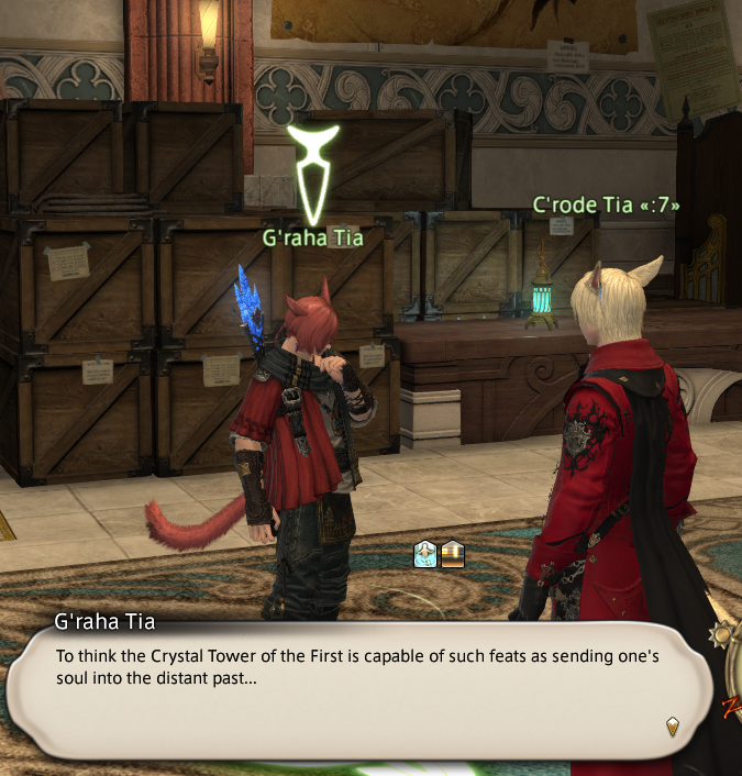 1세계의 크리스탈 타워가 누군가의 영혼을 먼 과거로 보낼 정도의 위업을 할 수 있었다니... 응, 네가 목격하고 도운 사건들은 분명 종말을 미룰 수 있는 열쇠를 쥐고 있을지도 몰라. 미래의 소중한 친우들이 생각나네.